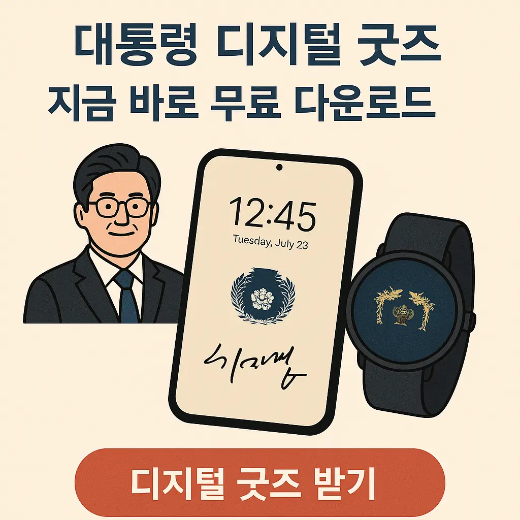 스마트폰 잠금화면을 열 때마다, 혹은 손목의 워치에 눈을 돌릴 때마다 이재명 대통령의 상징적인 서명, 휘장, 그리고 인간적인 메시지가 따뜻하게 다가온다면 어떨까요?