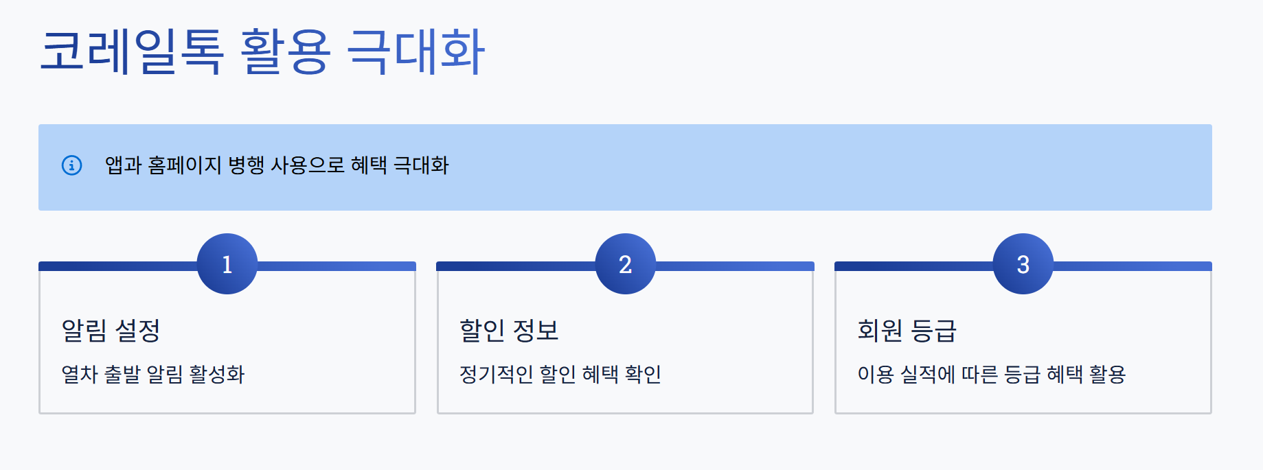 앱과 홈페이지를 함께 활용하면 열차 예매와 할인 혜택을 최대한 누릴 수 있습니다.