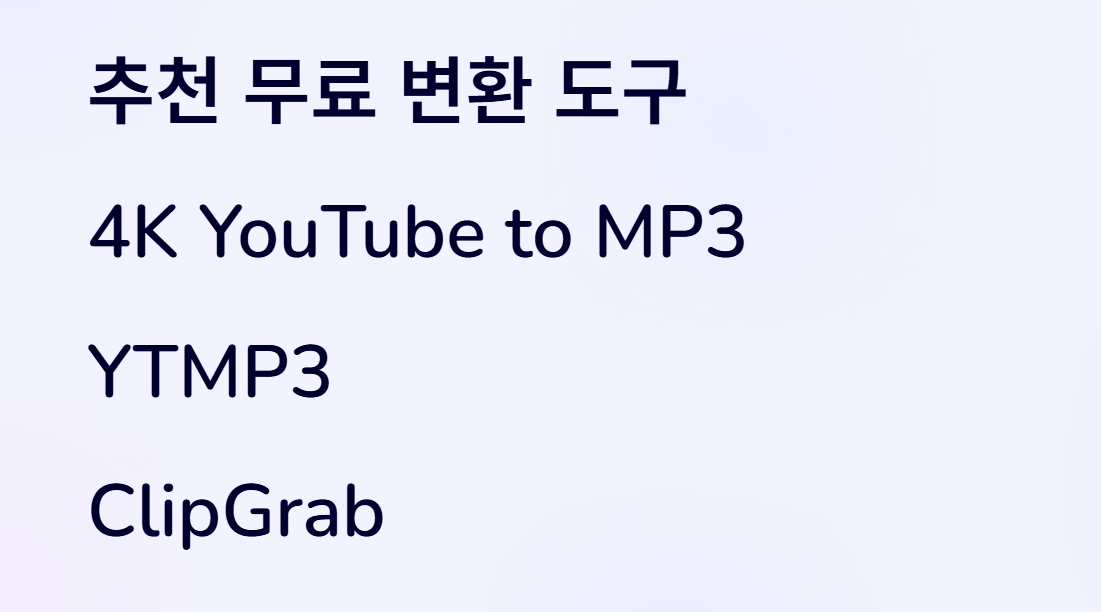 이번에 소개한 4K YouTube to MP3, YTMP3, ClipGrab은 안전성과 편의성이 검증된 무료 도구이니, 목적에 맞게 선택해보세요.