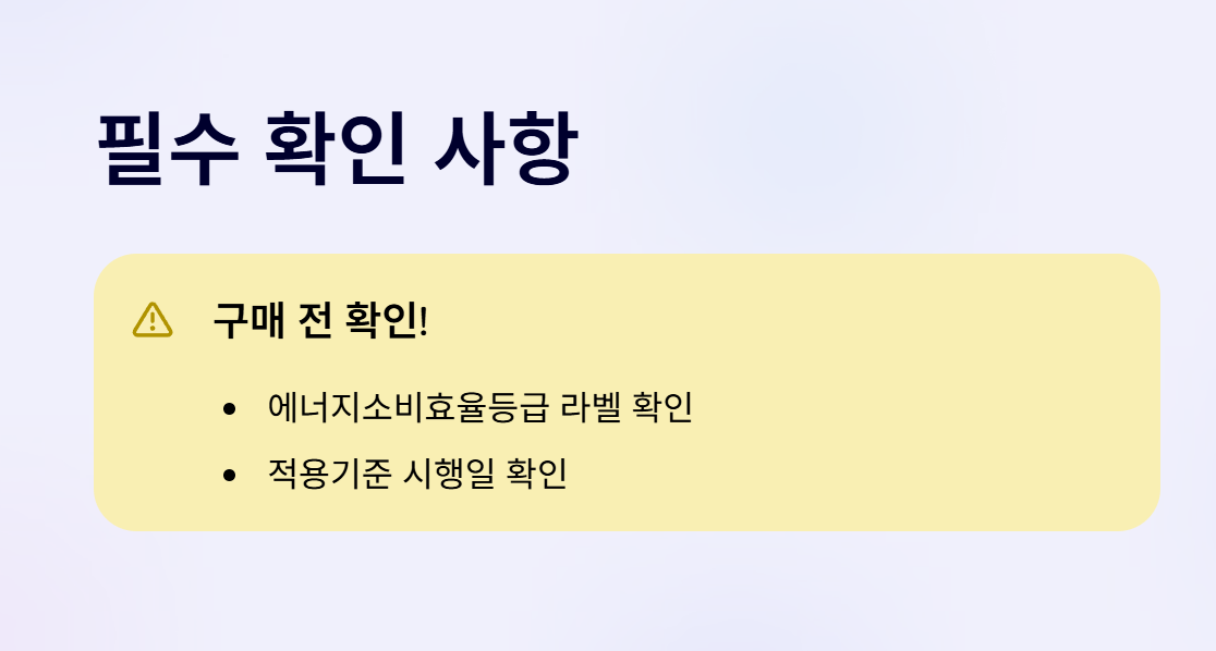 제품 구매 전 반드시 에너지소비효율등급 라벨과 적용기준 시행일을 확인하세요.